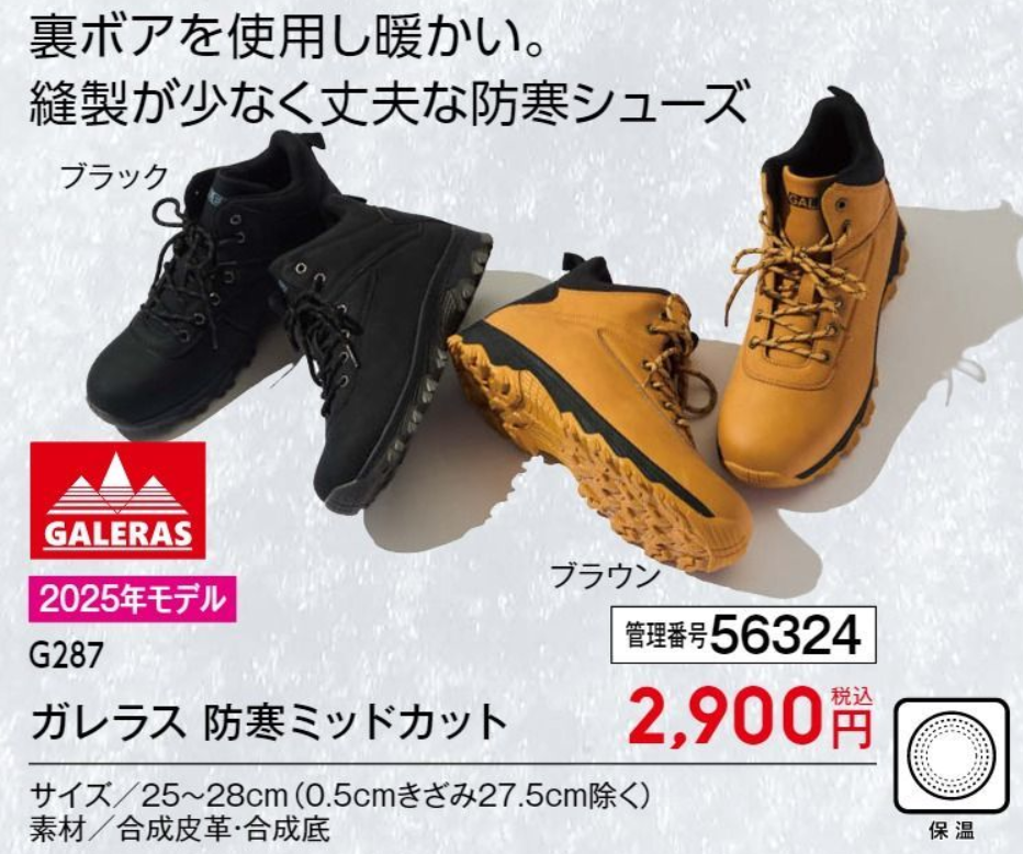 真冬に使える裏ボアや防寒ブーツを中心に、もう少し通年気味に使える商品との両方を見ていきましょう。
